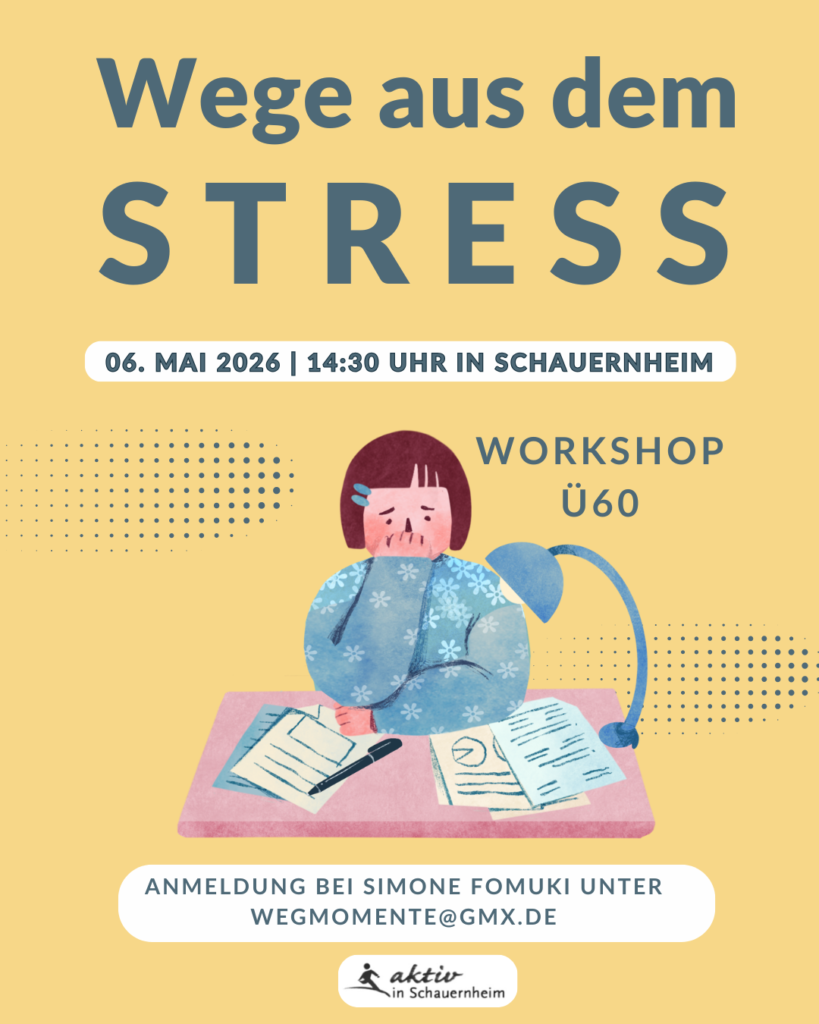 In diesem Workshop für Ü60-Jährige entdecken Sie, welche Belastungen und Stresssituationen Ihnen im Alltag zu schaffen machen, und entwickeln alltagstaugliche Strategien, die Ihnen mehr Handlungsspielraum und Gelassenheit geben. Mit einer Mischung aus Selbstreflexion und Partnerarbeit entsteht ein konkreter Plan, den Sie direkt umsetzen können.